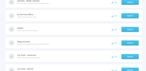 Pozn.: Zobrazují se pouze okruhy určené pro vaši jazykovou úroveň, což jsou okruhy označené úrovní, kterou jste si zvolili v nastavení, a okruhy o jednu úroveň nižší.