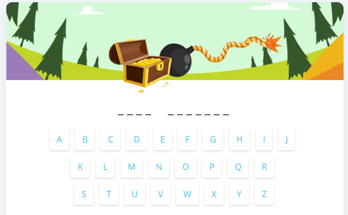 Další zábavný způsob zkoušení je hra “nevybouchni”, která je obdobou známé “šibenice”. Politicky možná nekorektního a pro děti ne úplně vhodného oběšence, jsme nahradili otevíráním truhly s pokladem a bombou, u které hoří doutnák.