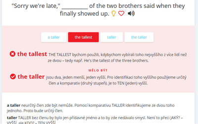Stejně jako u ostatních funkcí English Me, i zde neustále přibývají nové materiály, tedy nové otázky s vysvětlením odpovědí.