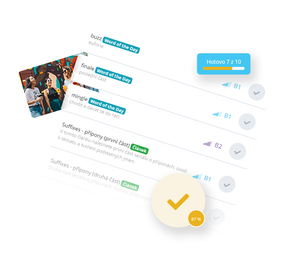 Přesvědčte se během 7 dní zdarmaSlovíčka u snídaně, poslech v MHD a doplňování vět před spaním.
